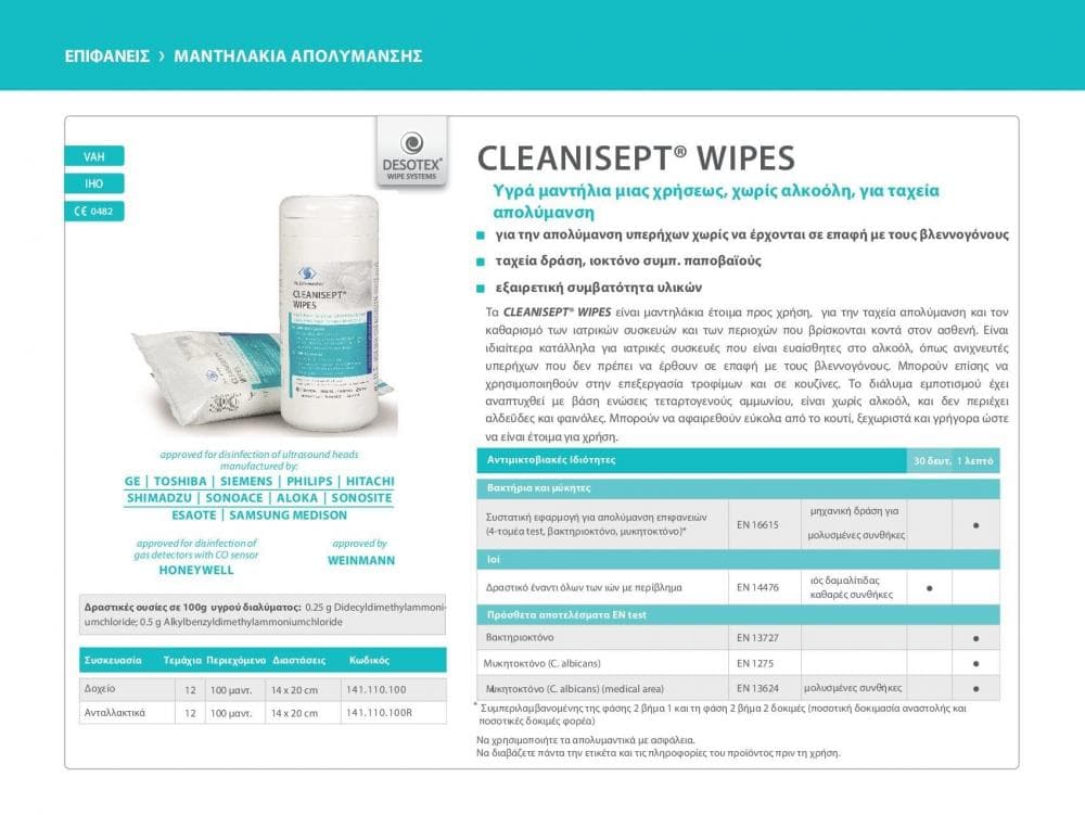 Τα Cleanisept wipes είναι μαντηλάκια έτοιμα προς χρήση, για την ταχεία