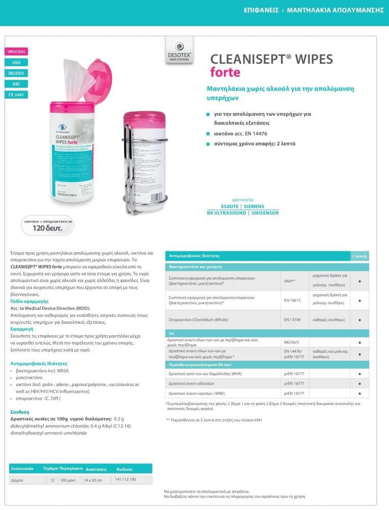 Έτοιμα προς χρήση μαντηλάκια απολύμανσης χωρίς αλκοόλ, ιοκτόνα και σποριοκτόνα για την ταχεία απολύμανση μικρών επιφανειών.