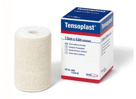 Επίδεσμος αυτοκόλλητος υποαλλεργικός Tensoplast. Χρησιμοποιείται ως ανακουφιστικός επίδεσμος σε περιπτώσεις βλαβών του συστήματος στήριξης και του κινητικού συστήματος, π.χ. σε θλάσεις, διαστρέμματα, σε μυϊκές βλάβες καθώς και σε βλάβες των συνδέσμων και των τενόντων.
