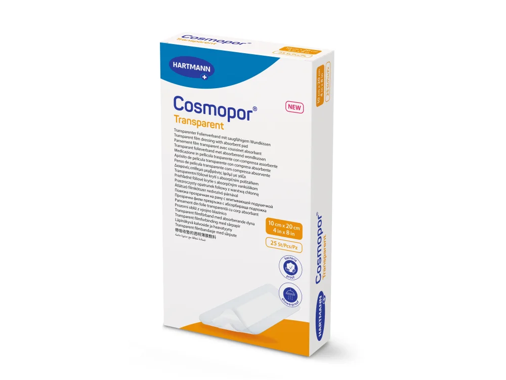 Αδιάβροχες γάζες με διαφανή μεμβράνη Cosmopor Transparent, αδιαπέραστες από τα μικρόβια και το νερό.