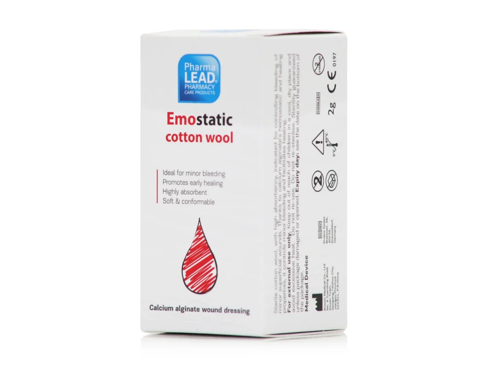 Αιμοστατικό βαμβάκι 2,5gr Pharma Lead που ενδείκνυται για μικρές αιμορραγίες και ρινορραγίες, μπλοκάροντας το αίμα και διευκολύνοντας την επούλωση.