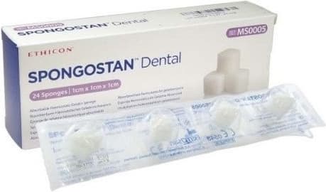 Αιμοστατικός σπόγγος Spongostan της Ethicon, άριστης ποιότητας σχηματισμένος ειδικά για οδοντιατρικές εφαρμογές.