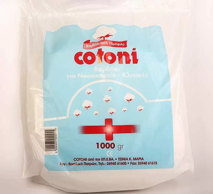 Παράγεται από 100% υδρόφιλο φαρμακευτικό βαμβάκι. Λευκό, μαλακό, καλά λαναρισμένο, αποτελείται από μακριές ίνες, ξετυλίγεται και κόβεται εύκολα