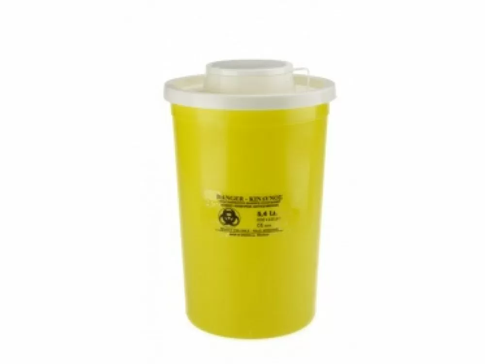 Πλαστικό δοχείο 5,4 lt με κάπακι για την ασφαλή απόρριψη μολυσματικών αιχμηρών αντικειμένων όπως βελόνες, πεταλούδες κ.α. Ιδανικό για χρήση σε κάθε ιατρική μονάδα.