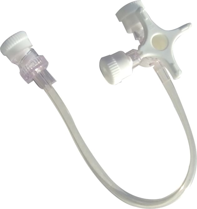 Στρόφιγγα τριών οδών (3-way) με προέκταση 10cm η οποία καταλήγει σε συνδετικό luer lock.