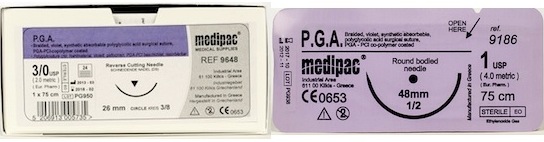 Συνθετικό απορροφούμενο χειρουργικό ράμμα πολυγλυκολικού οξέος PGA 3.0 μήκους 75mm.