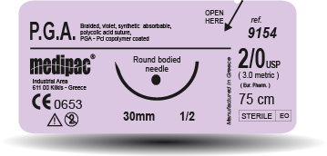 Συνθετικό απορροφούμενο χειρουργικό ράμμα πολυγλυκολικού οξέος PGA.1 μήκους 75mm.