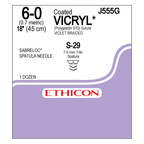 Πλεκτό ράμμα vicryl 6.0 μήκους 45cm με ατραυματική στρογγυλή βελόνα 13mm 1/2 του κύκλου (W9981).