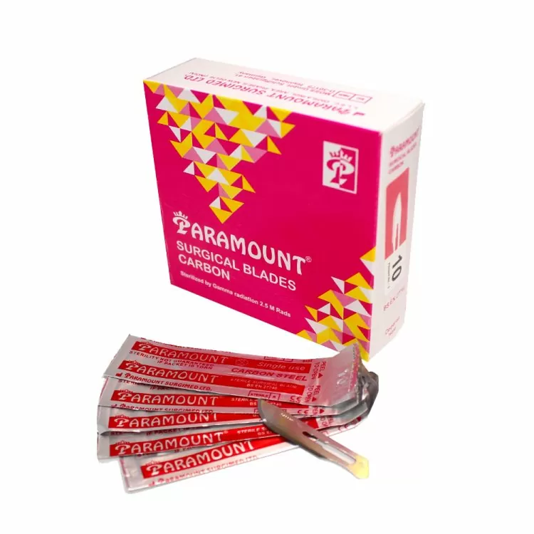 Λαμες χειρουργικές Paramount Carbon κατασκευασμένες από ανθρακούχο ατσάλι σε κουτιά των 100 τεμαχίων.