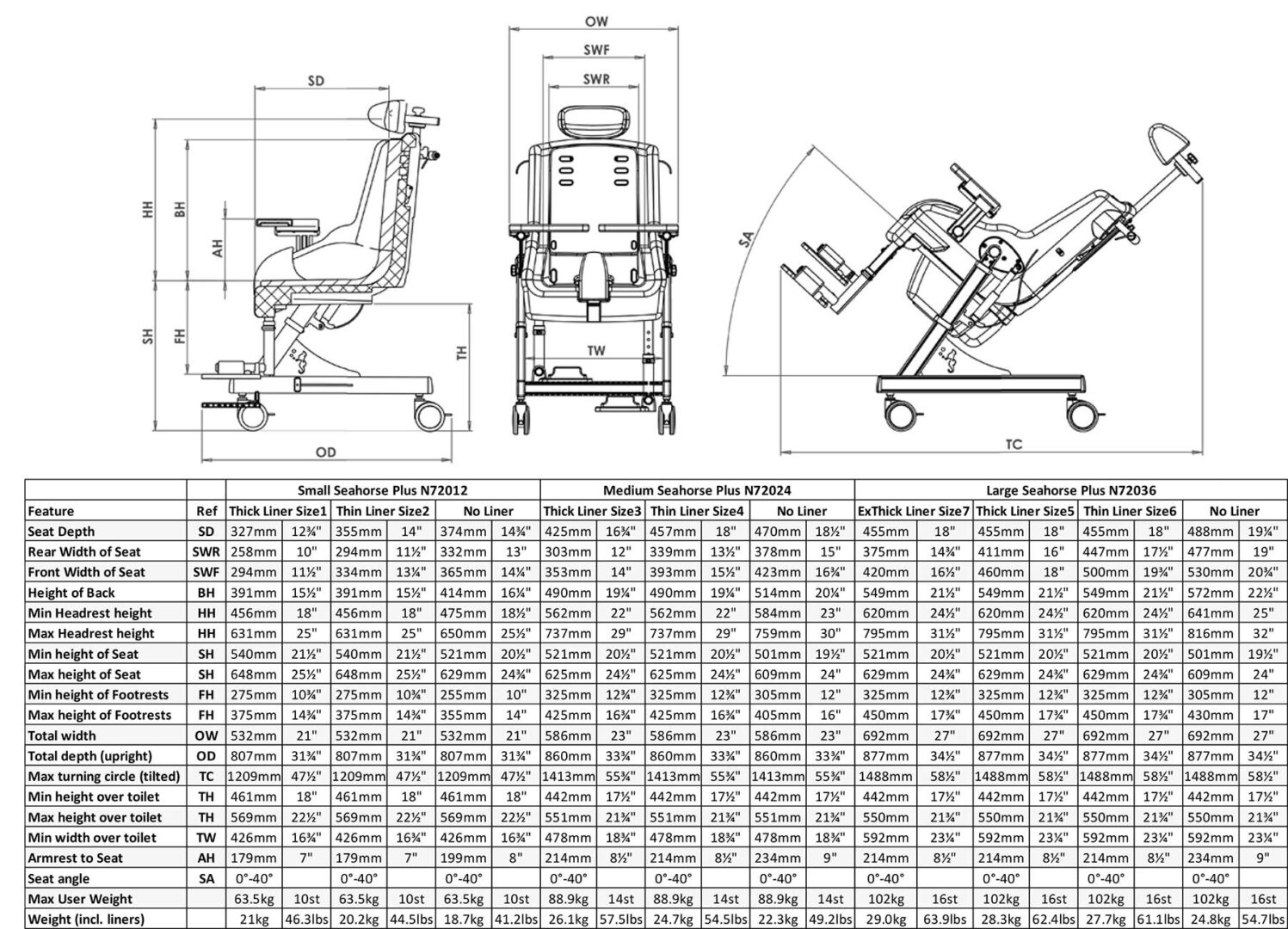 Διατίθεται σε τρία μεγέθη σκελετού: SMALL: Ηλικίες 5-10 ετών, μέγιστο βάρος παιδιού 64Kg MEDIUM: Ηλικίες 10-15 ετών, μέγιστο βάρος παιδιού 102Kg LARGE: Ηλικίες 15-18 ετών, μέγιστο βάρος παιδιού 152Kg
