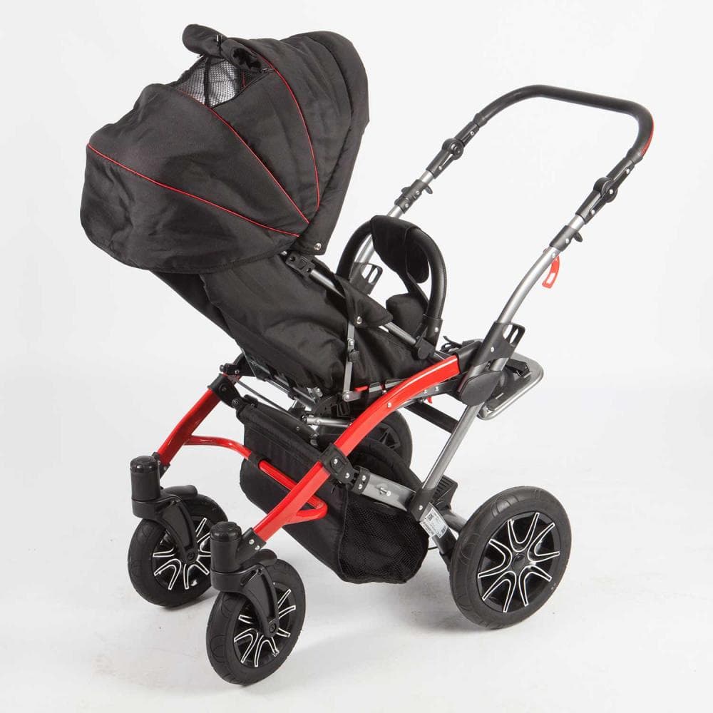 Είναι εξοπλισμένο με περιστρεφόμενες μπροστινές ρόδες και αναστρέψιμη μονάδα καθίσματος έτσι ώστε το παιδί να έχει την επιθυμητή οπτική επαφή.