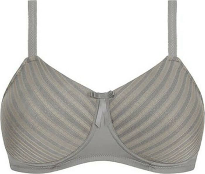 - Κομψός στηθόδεσμος, χωρίς μπανέλα, με μοντέρνα δαντέλα στο μπροστινό και το πίσω μέρος που σε συνδυασμό με το απαλό nude χρώμα των cups δημιουργεί ριγέ οπτικό εφέ.