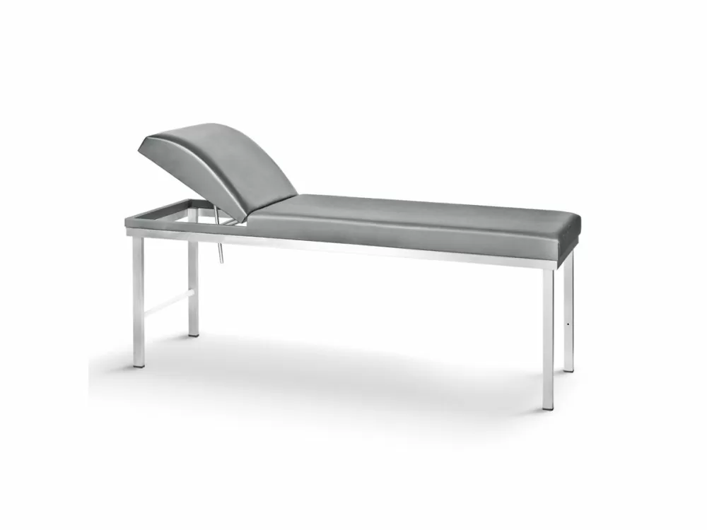 Εξεταστική κλίνη σε κλασικό σχέδιο από ανθεκτικό ανοξείδωτο σκελετό, κατάλληλη για κάθε ιατρική ειδικότητα.