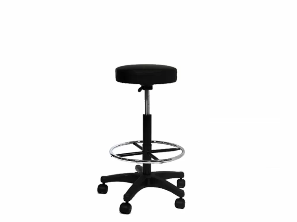 Σκαμπό τροχήλατο, με υποπόδιο και χωρίς πλάτη, στρογγυλό για επαγγελματική χρήση.