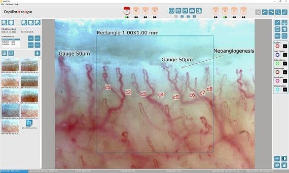 Τα διαθέσιμα εργαλεία ικανοποιούν όλες τις ανάγκες των διεθνώς αναγνωρισμένων τεχνικών εξέτασης τριχοειδοσκόπησης και είναι εύκολα προσβάσιμα, ενώ πρόσθετα εργαλεία μπορούν να χρησιμοποιηθούν για την επέκταση του βάθους της μελέτης, εάν απαιτείται. Η αξιολόγηση των αποθηκευμένων εικόνων μπορεί να γίνει κατά τη διάρκεια ή μετά από μια εξέταση. Η ακρίβεια διασφαλίζεται με προ-βαθμονομημένες μεγεθύνσεις φακών.