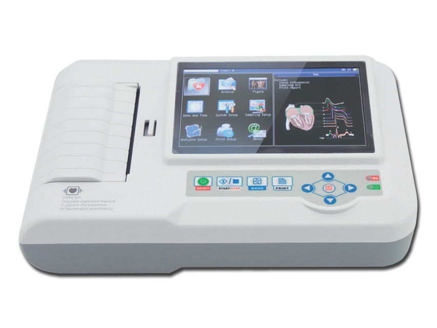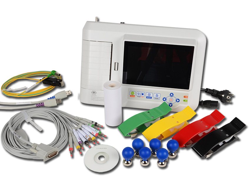 Ψηφιακός ηλεκτροκαρδιογράφος CONTEC ECG600G με monitor ανάλυσης 800χ480 pixels 12 απαγωγών και δυνατότητα αυτόματης δειγματοληψίας σήματος 12 απαγωγών.