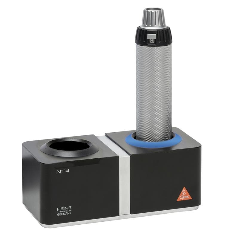 Ο τελευταίας γενιάς Φορτιστής Heine NT4 φορτίζει αυτόματα όλες τις νέες (ΒΕΤΑ4) λαβές επαναφορτιζόμενης μπαταρίας Heine ανεξάρτητα από την κατάσταση φόρτισης τους. Ο φορτιστής διαθέτει κύκλωμα αποφυγής υπερφόρτωσης της μπαταρίας. Συνεργάζεται με τις λαβές Heine BETA 4 NT & BETA 4 SLIM NT καθώς και τις λαβές λαρυγγοσκοπίων F.O. 4 NT, SLIM NT & SHORT NT. Για τις λαβές BETA SLIM & SHORT NT απαιτείται η χρήση του αντάπτορα.