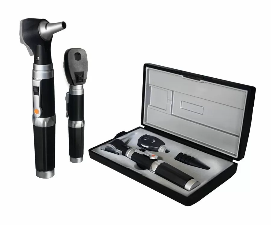 Διαγνωστικό σετ σε κασετίνα που περιλαμβάνει ωτοσκόπιο οπτικής ίνας, οφθαλμοσκόπιο καθώς και 4 χωνάκια πολλαπλών χρήσεων σε διαστάσεις: