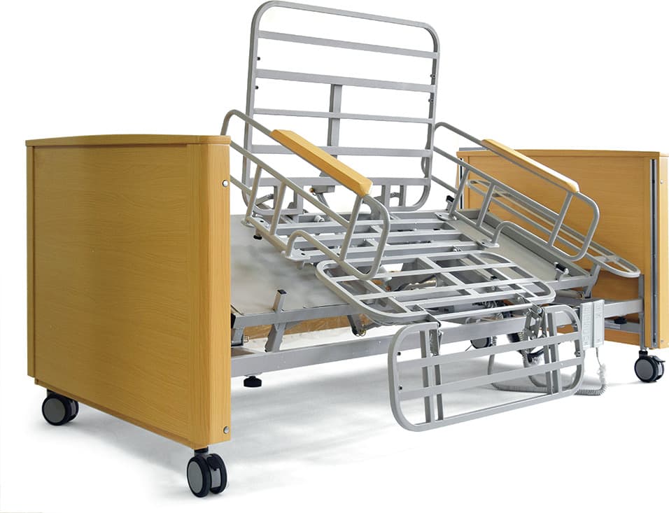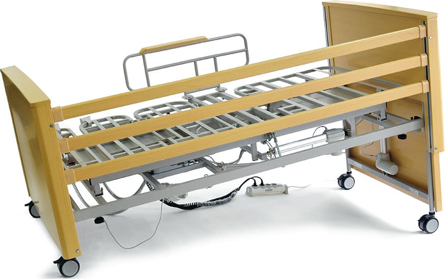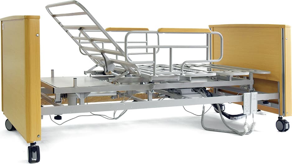 Πολυχρηστική ηλεκτρική κλίνη υψηλών προδιαγραφών. Συνδιάζει όλες τις λειτουργίες ενός νοσοκοµειακού ηλεκτρικού κρεβατιού µε αυτές της πολυθρόνας lift-up. Λειτουργεί µε επτά µοτέρ και δύο χειριστήρια. Η ανάκλιση της πλάτης, η ανύψωση των κάτω άκρων καθώς και η ρύθµιση της γωνίας των γονάτων, πραγµατοποιούνται ανεξάρτητα και αυτόνοµα µε ηλεκτρικό χειριστήριο. Το συνολικό ύψος της κλίνης ρυθµίζεται ηλεκτρικά σε θέσεις επιλογής. ∆υνατότητα ανεξάρτητης λειτουργίας του µοτέρ της µετώπης της κεφαλής ή των κάτω άκρων (“Trendelenburg/Anti-Trendelenburg Position”). Αναρτήρας ανύψωσης του ασθενή µε δελτοειδή ρυθµιζόµενη λαβή. Σύστηµα αµφίπλευρης περιστροφής του σοµιέ κατ' επιλογή σε θέση καθίσµατος και υποβοήθησης του χρήστη σε όρθια στάση. Εύκολη µεταφορά στο χώρο χάρη στους τέσσερεις τροχούς µε φρένο, που ασφαλίζουν ανεξάρτητα. Η συναρµολόγηση πραγµατοποιείται εύκολα χωρίς εργαλεία.