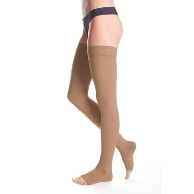 Το τελείωμα της δαντέλας είναι κατάλληλο για πόδια με μεγαλύτερη περιφέρεια, εξασφαλίζει τη σταθερότητα σε όλη την περίμετρο, εμποδίζει το δίπλωμα και αποτρέπει τη δημιουργία πληγών από την πίεση.