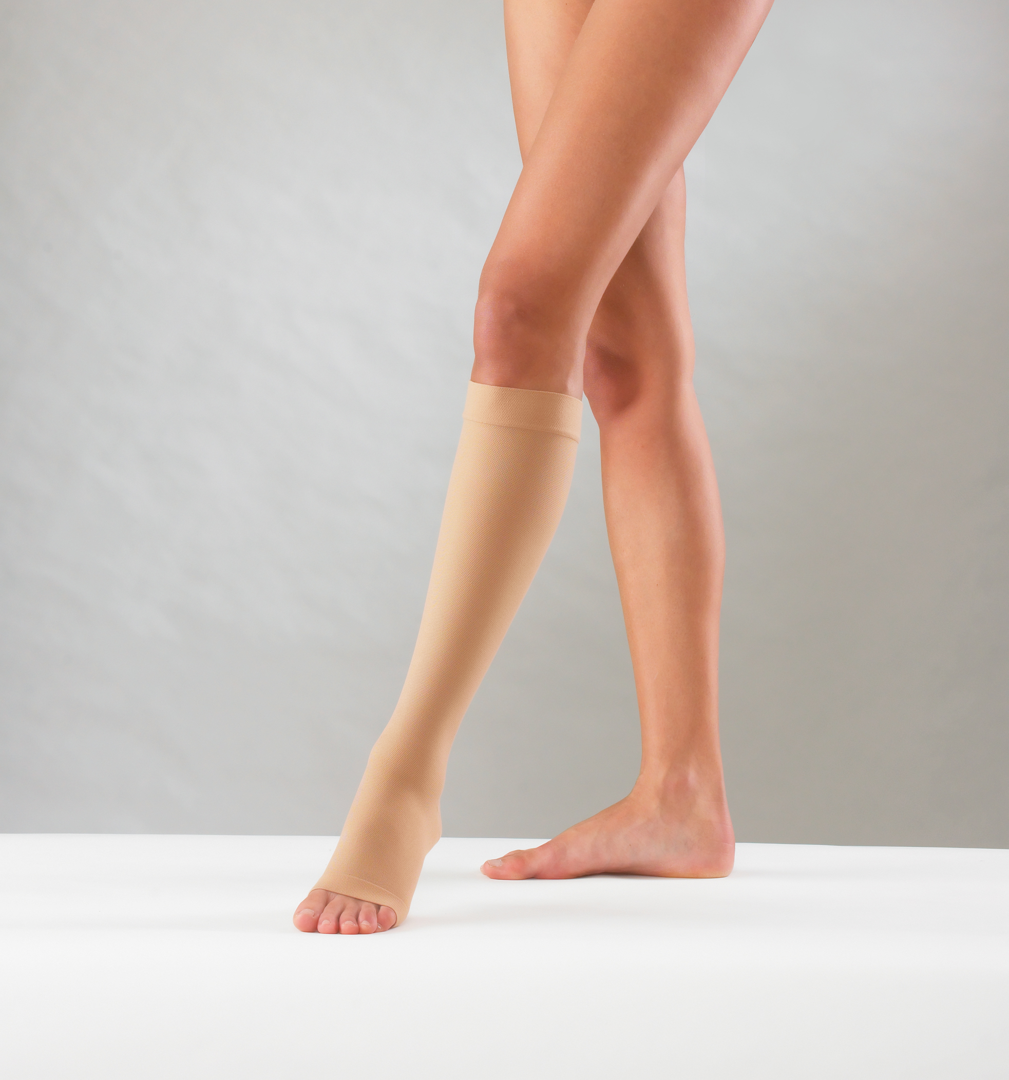 Κάλτσα φλεβίτιδος κλάση ΙΙ κάτω γόνατος ανοιχτά δάκτυλα μπεζ 23-32mmHG (T41)