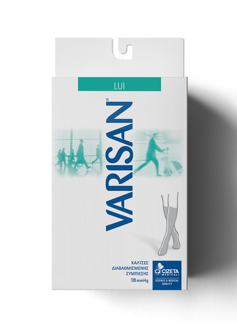 Οι ανδρικές κάλτσες VARISAN LUI διαβαθμισμένης συμπίεσης (18mm Hg) αποτρέπουν τη συσσώρευση του αίματος στα κάτω άκρα απαλλάσσοντας από το πρήξιμο, τις νυχτερινές κράμπες και την αίσθηση βάρους στα πόδια.