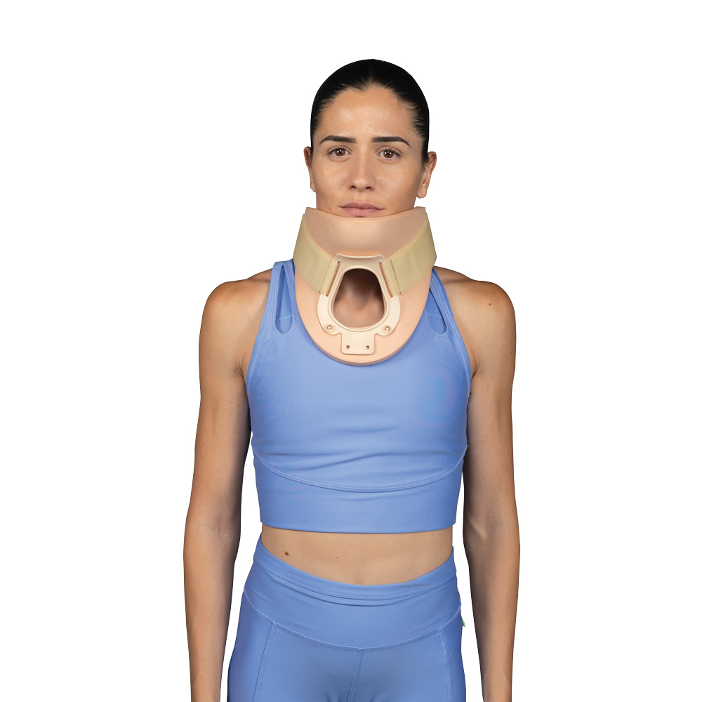 - Το μπροστινό μέρος φέρει τραχειακή οπή και στήριγμα για την κάτω γνάθο ώστε να προσφέρει καλύτερη σταθεροποίηση.