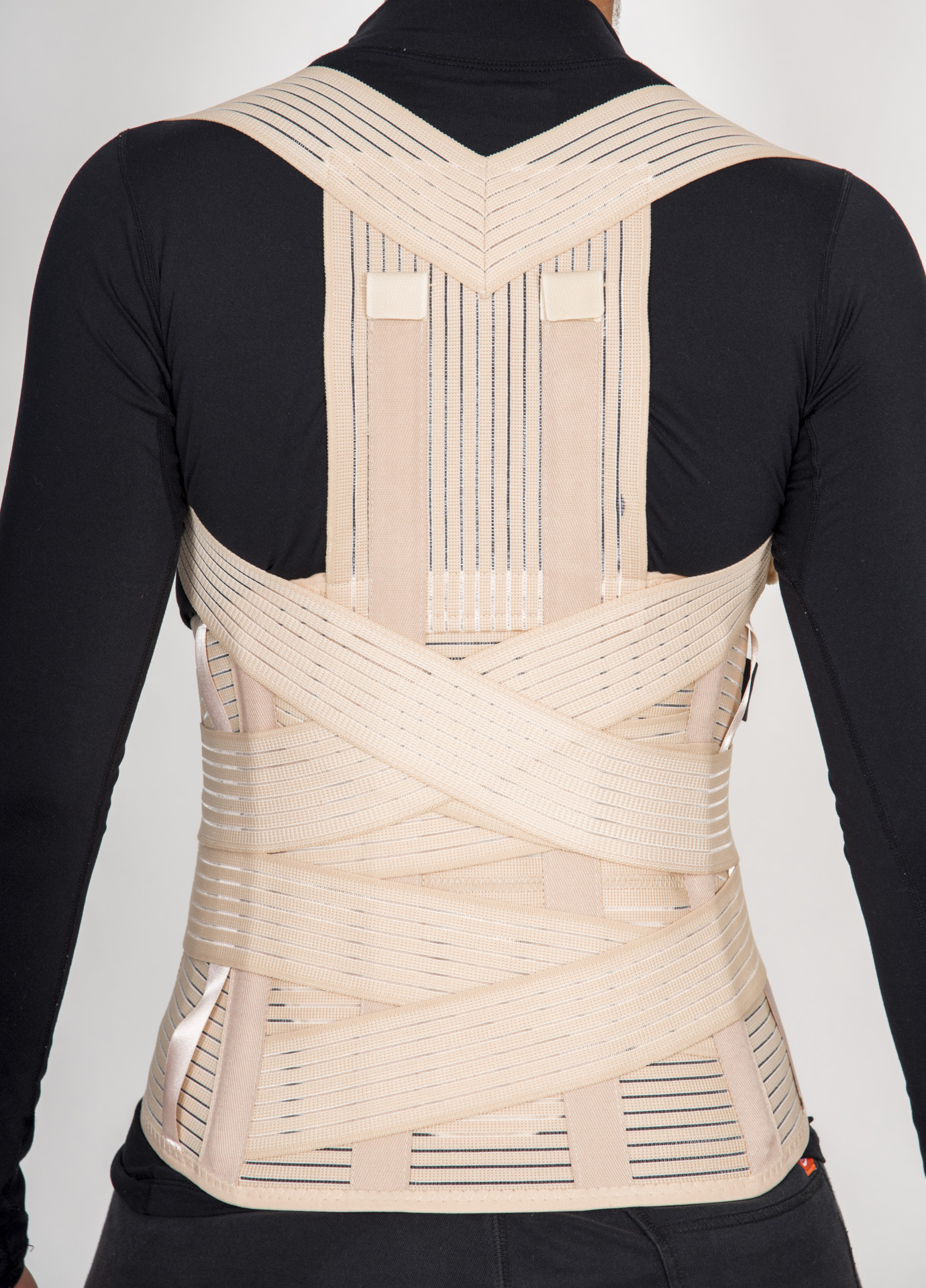 Διαθέτει δύο ελαστικούς ιμάντες που διασταυρώνουν χιαστί στην περιοχή της ράχης και βοηθούν στην έκταση του κορμού, αυτοκόλλητους με Velcro