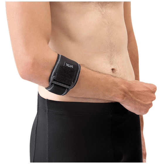 Kατασκευή από «neoprene» πάχους 3mm. Το πίεστρο χρησιμεύει για την απαιτούμενη δυναμική συμπίεση στον έσω ή έξω κόνδυλο. Η αυτοκόλλητη δέστρα σταθεροποιεί τα μαλακά μόρια και τους ιστούς.