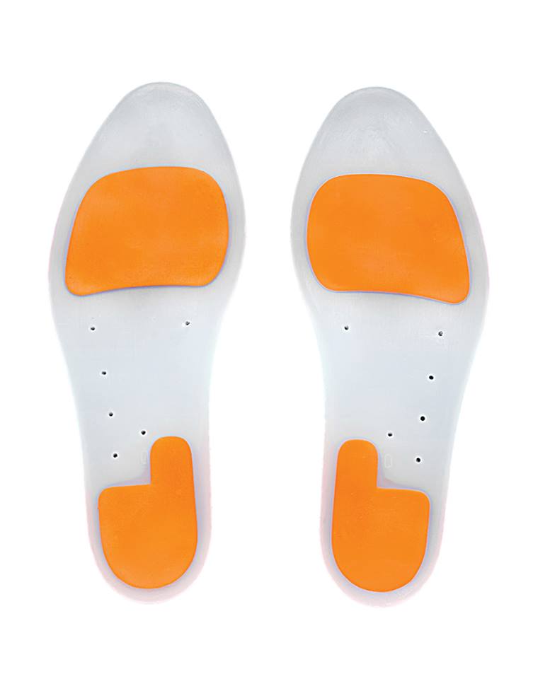 Ανατομικά πέλματα από σιλικόνη δύο πυκνοτήτων (μαλακή και σταθερή), υποαλλεργική, αντιβακτηριδιακή και φιλική με το ευαίσθητο δέρμα.