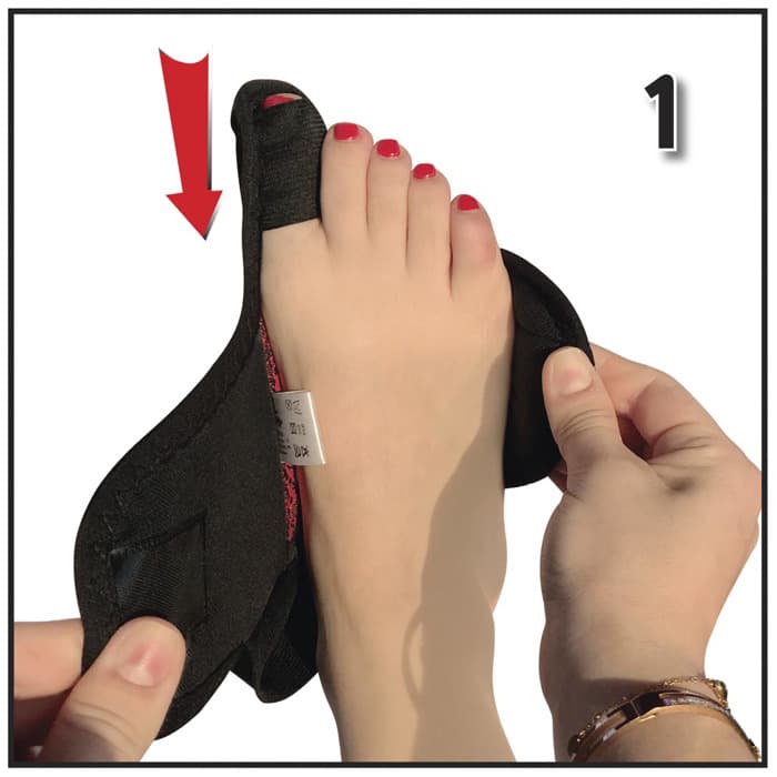 Φορέστε τον νάρθηκα βλαισού όπως δείχνουν οι οδηγίες και προσαρμόστε την μεταλλική μπανέλα στις ανάγκες του δικού σας δακτύλου.